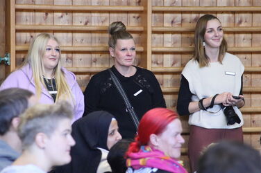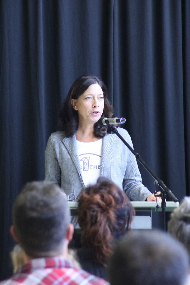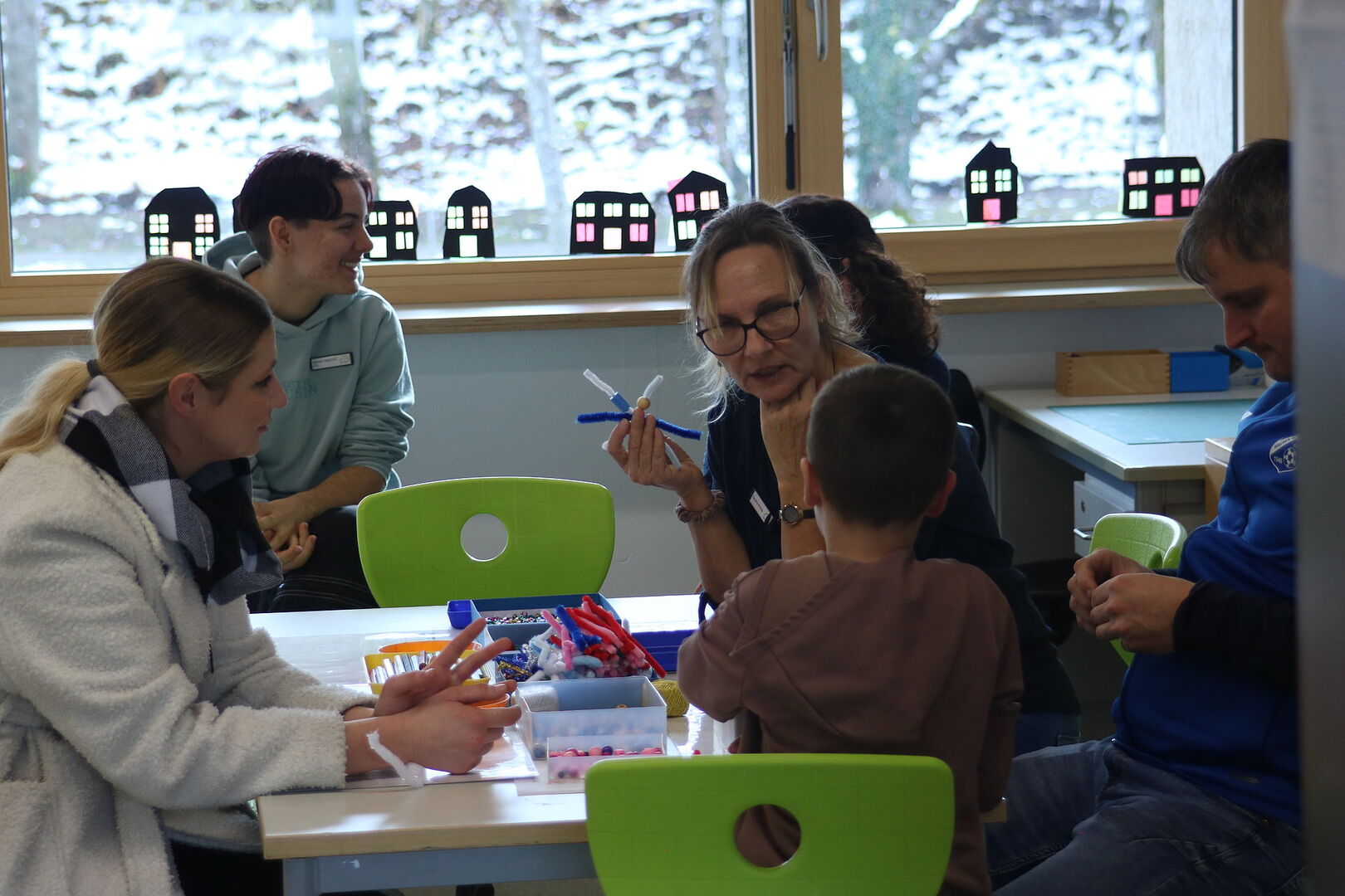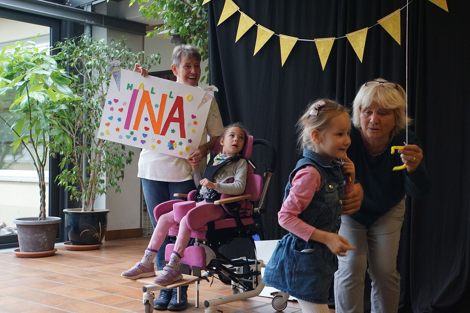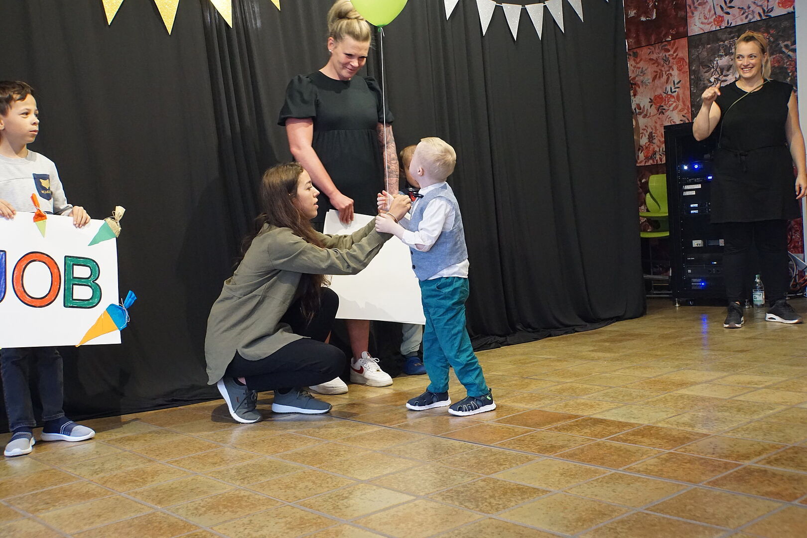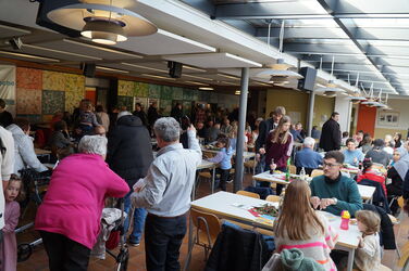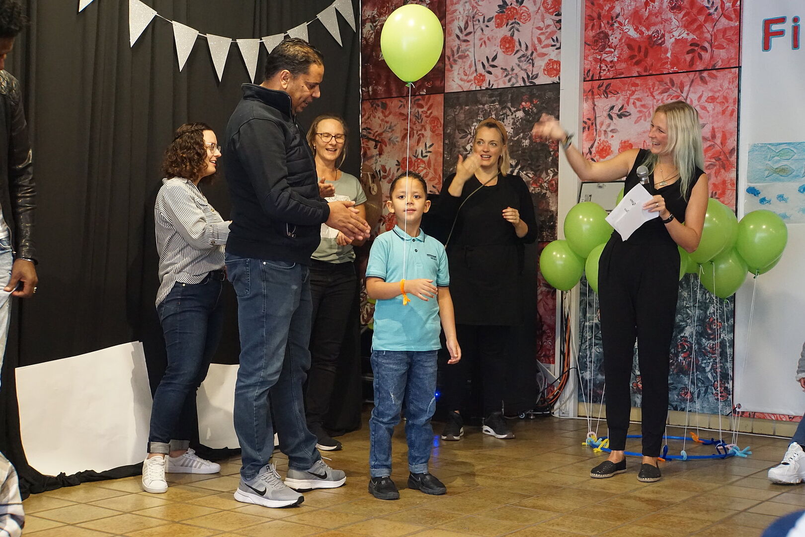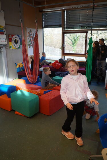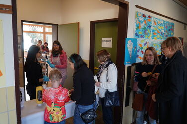 Nach ein paar Worten der Stufenleitung und der Schulleitung hat die gesamte Grundstufe der Haldenwang-Schule die neuen Schülerinnen und Schüler mit drei Tänzen und viel Motivation willkommen geheißen. Die einzelnen Erstklässler*innen wurden von ihren neuen Klassenlehrerinnen nacheinander in Empfang genommen und von allen mit einem kurzen Lied begrüßt. Danach gab es für die Familien der neuen Schüler*innen noch Kaffee und Kuchen.