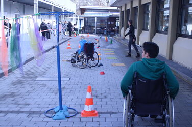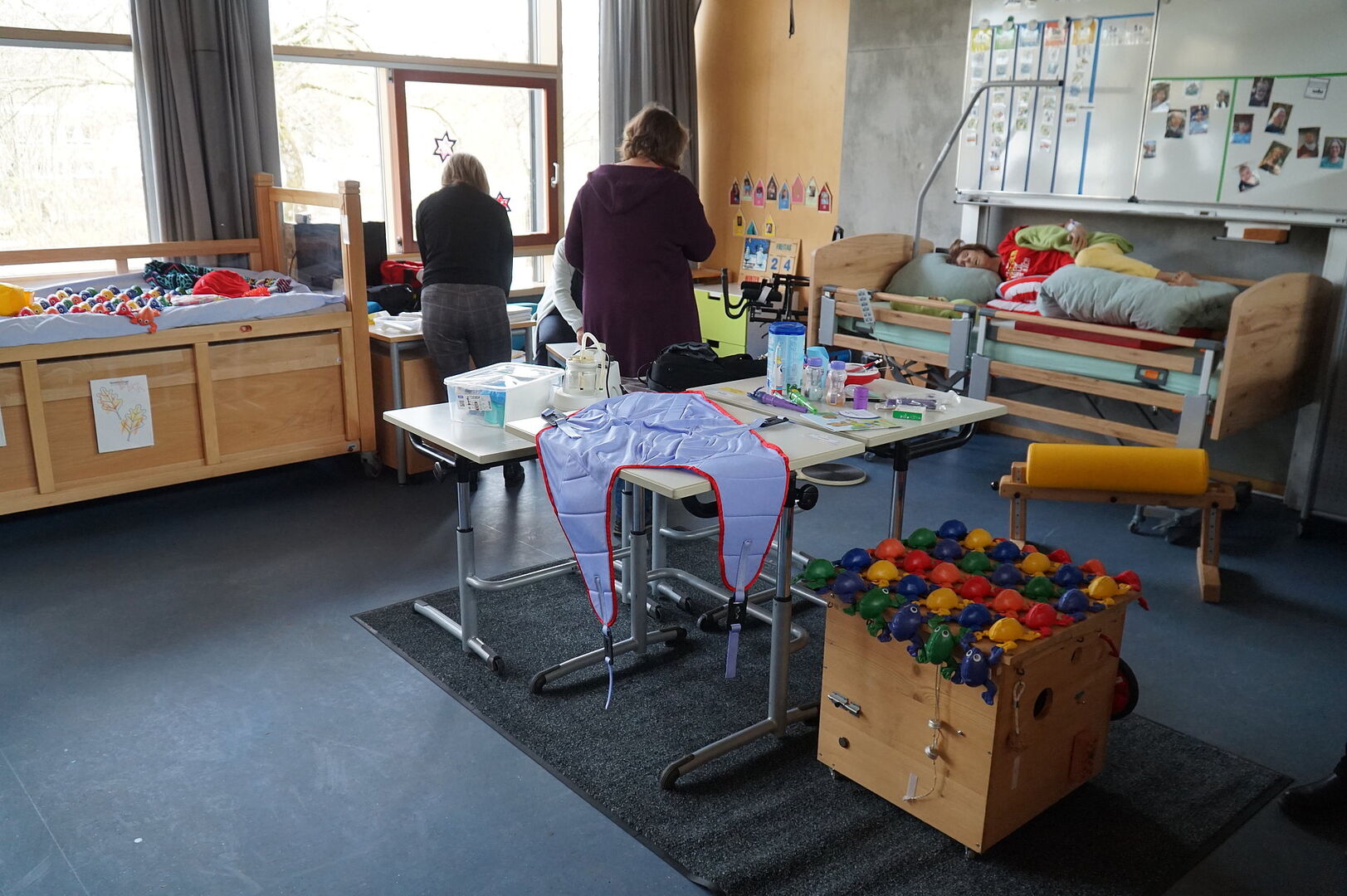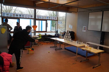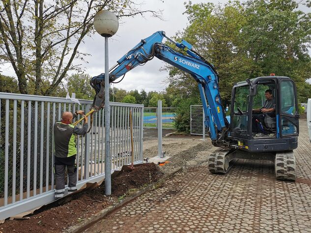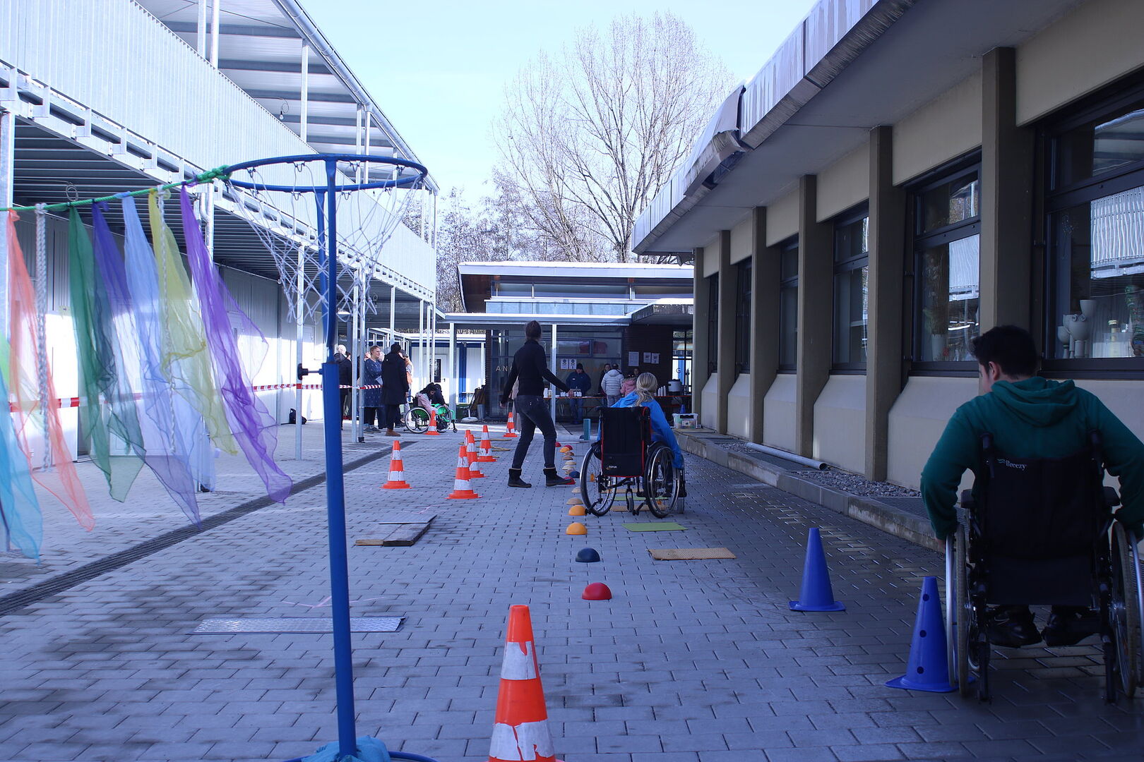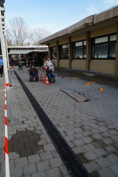 Zum neuen Schuljahr bekommt die Haldenwang-Schule vier neue Container-Klassenzimmer, inklusive Pflegeräumen. Deshalb ist derzeit eine große Baustelle, wo früher der vordere Schulhof war. Es wird von vielen Handwerkern fleißig gearbeitet, damit die Schülerinnen und Schüler bald in den Containern unterrichtet werden können. Die Handwerker arbeiten richtig supergut! Vorübergehend findet der Unterricht in den Fachräumen der Schule statt, welche zu Klassenräumen umgeräumt und eingerichtet wurden.
