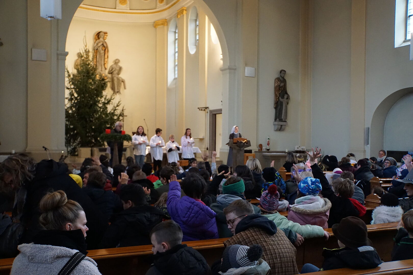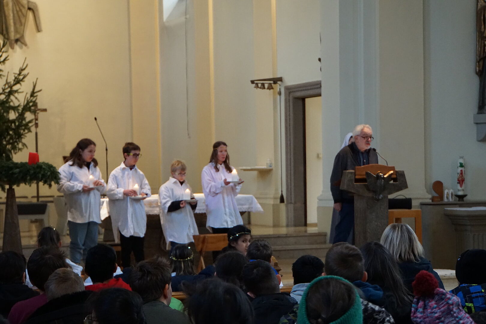 Der Weihnachtsgottesdienst fand in der St. Joseph-Kirche in Singen statt. Viele Schülerinnen und Schüler waren an der Aufführung eines Krippenspiels beteiligt. Viele weihnachtliche Lieder gaben dem Gottesdienst eine feierliche Stimmung. Vielen Dank an Frau Hertkorn, Schwester Marie-Salome und an Herrn Blersch für die Gestaltung des Weihnachtsgottesdienstes!