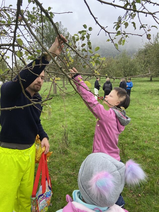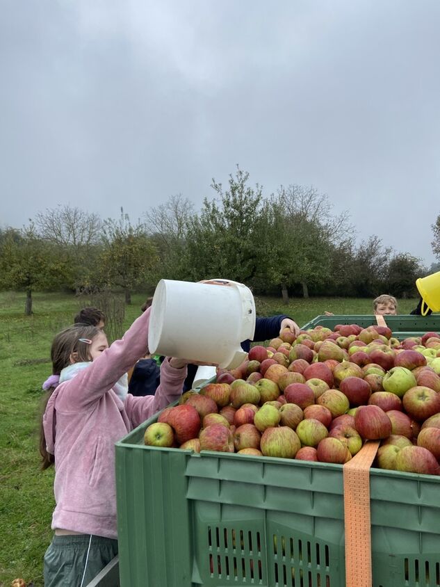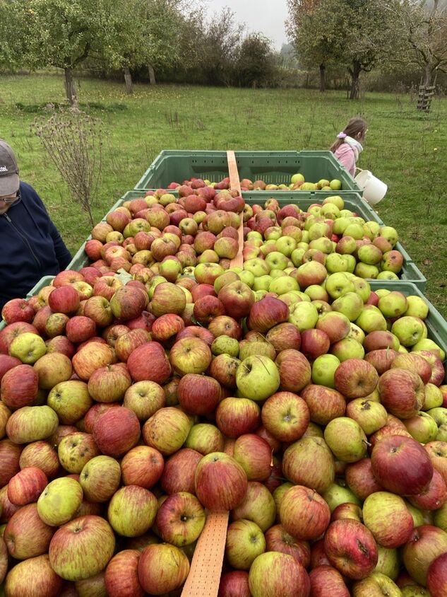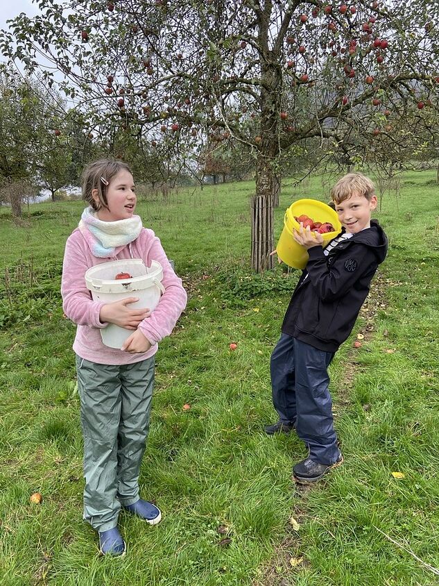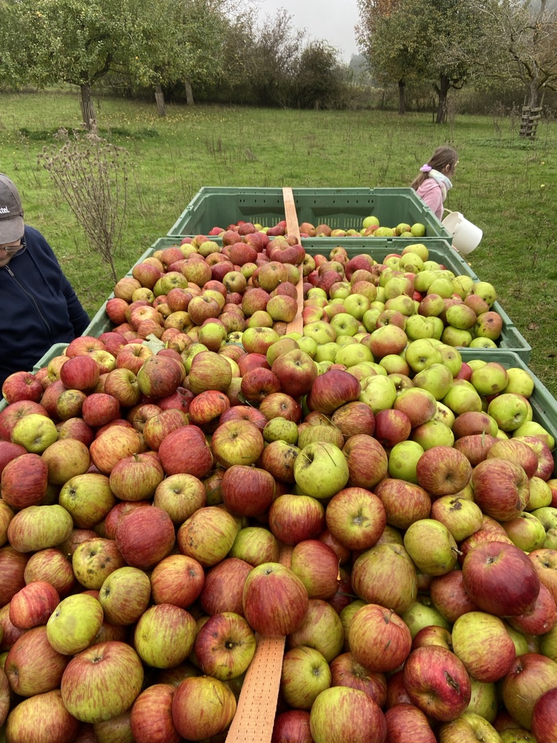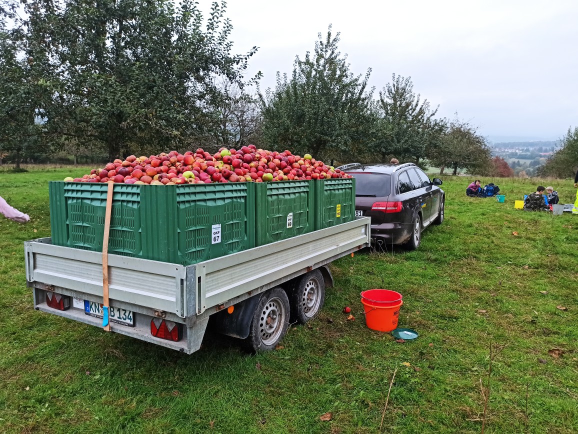 Unterhalb der Domäne auf dem Hohentwiel gibt es viele Apfelbäume. Aus allen Stufen der Haldenwang-Schule und der Wessenberg-Schule trafen sich dort Klassen zur Apfelernte. In Windeseile wurden die Äpfel eingesammelt und in große Container gebracht . Die Äpfel wurde nach Steißlingen zur Mosterei Weinmann gefahren. Wir freuen uns wieder auf unseren "eigenen" Saft. Einige Gruppen machten sich danach zu Fuß auf den Rückweg zur Schule. Vielen Dank an die Domäne am Hohentwiel.