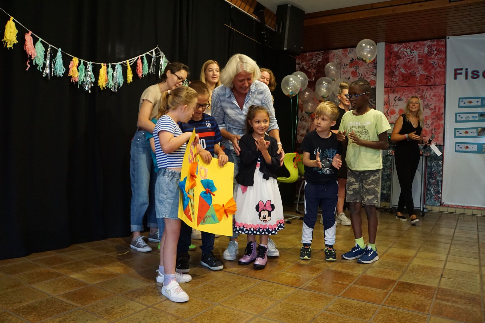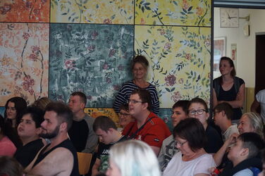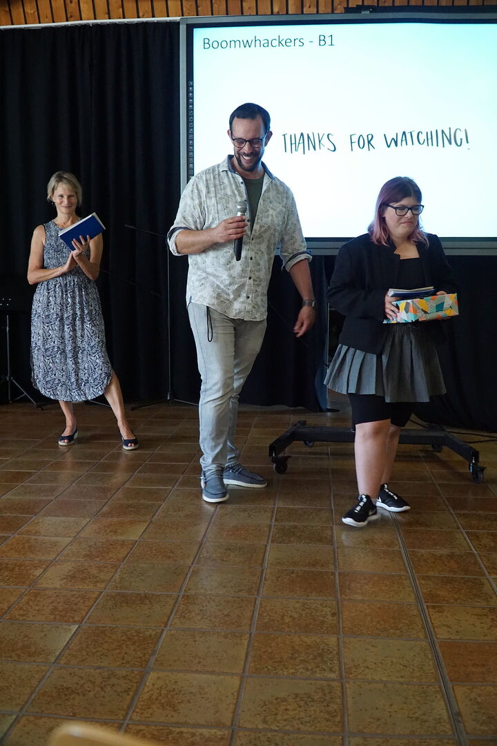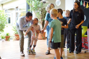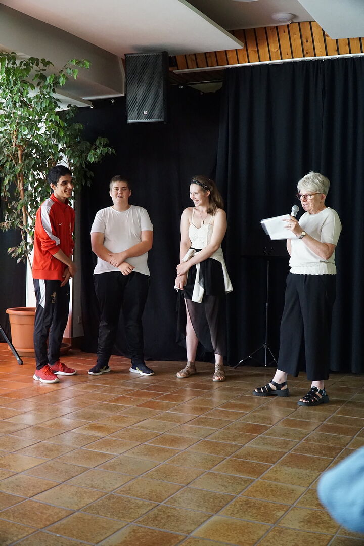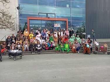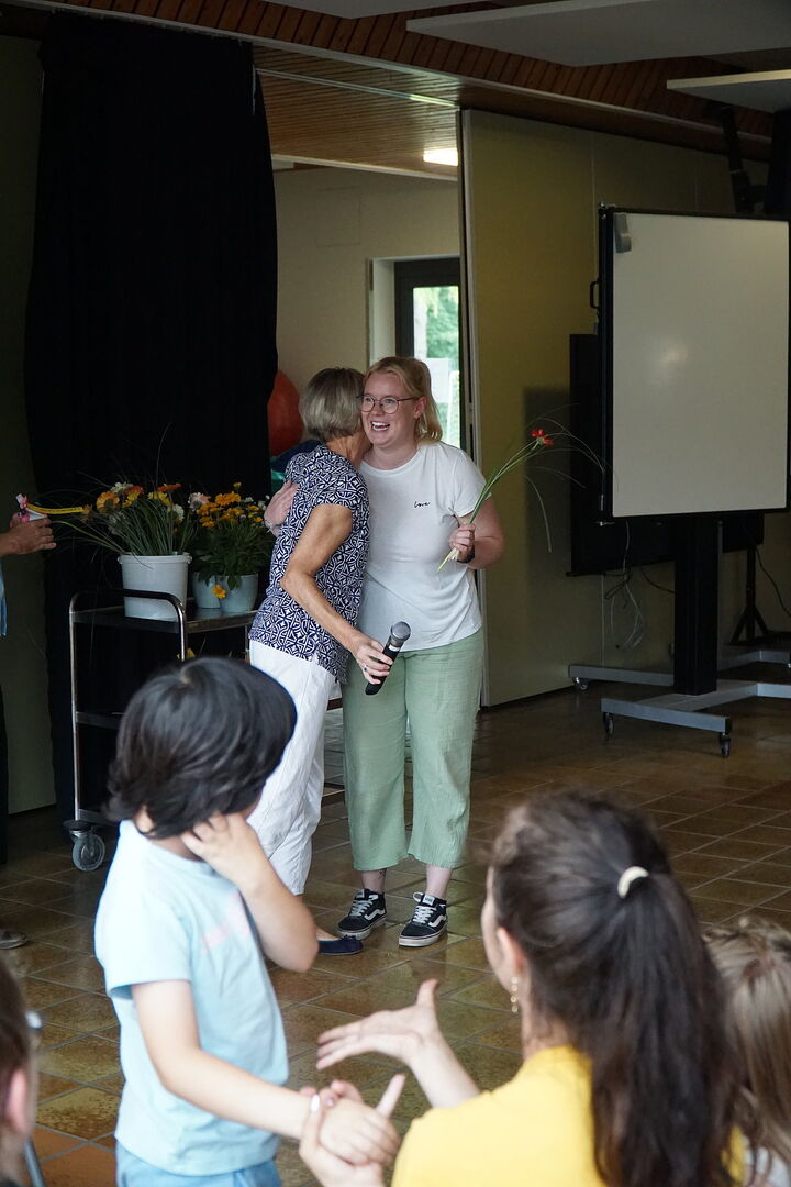 Nach der offiziellen Begrüßung durch die Schulleitung fand ein tolles Programm, das die SchülerInnen aus allen Grundstufenklassen gemeinsam einstudiert hatten, statt. Die EinschülerInnen und ihre Familien wurden mit drei großartigen Tänzen an der Haldenwang-Schule willkommen geheißen. Nachdem alle EinschülerInnen einzeln durch ihre Klassenlehrerinnen und Klassenkameraden/Kameradinnen begrüßt wurden, fand das Programm seinen Höhepunkt. Die einzigartigen TänzerInnen der Grundstufe tanzten zu Mark Forsters Hit "Chöre". Im Anschluss wurde sich bei Kaffee und Kuchen mit den Eltern, EinschülerInnen, Gästen und Lehrkräften ausgetaucht.