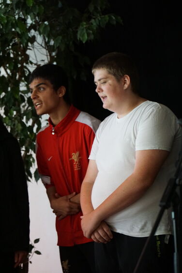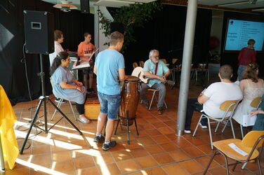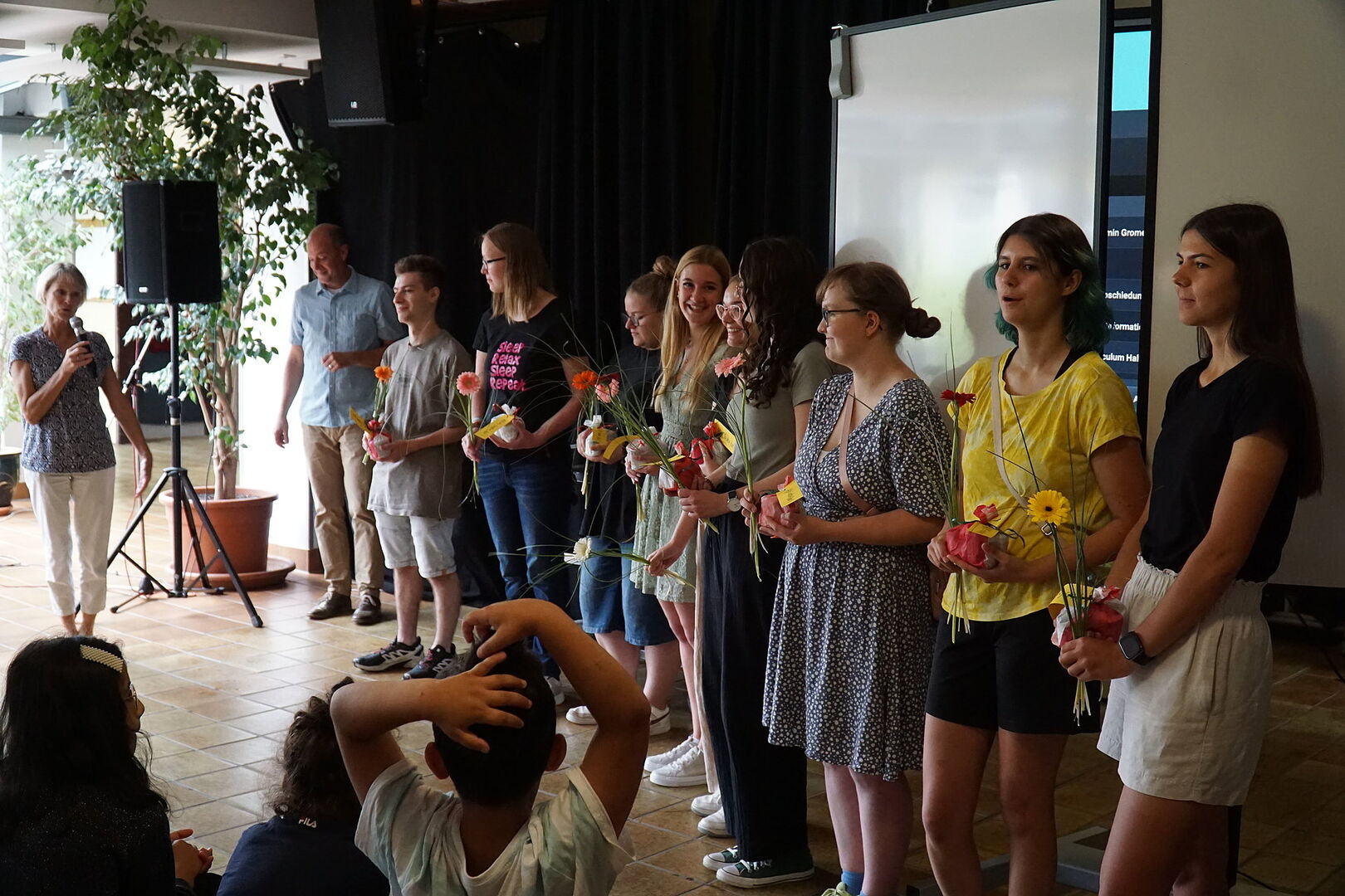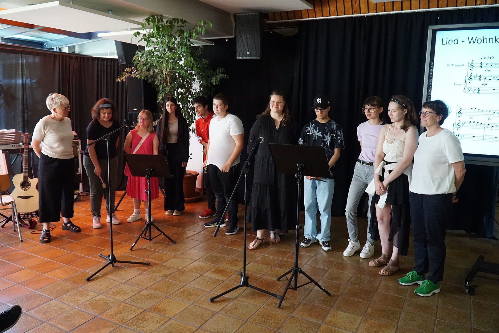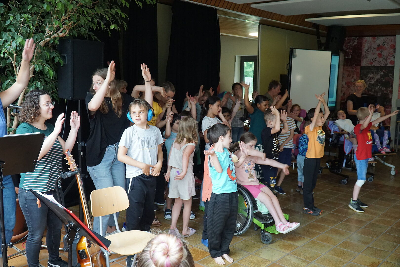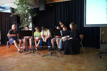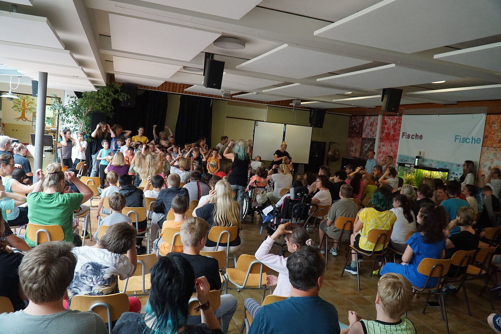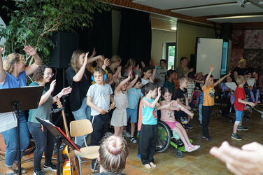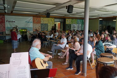 Schülerinnen, Schüler, Lehrerinnen und Lehrer und alle anderen Besucher haben gemeinsam gesungen und musiziert.