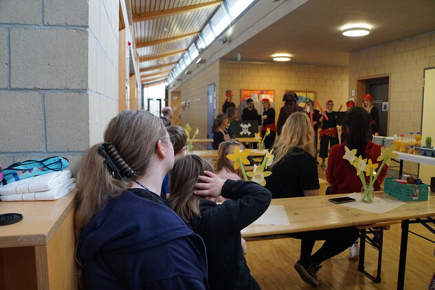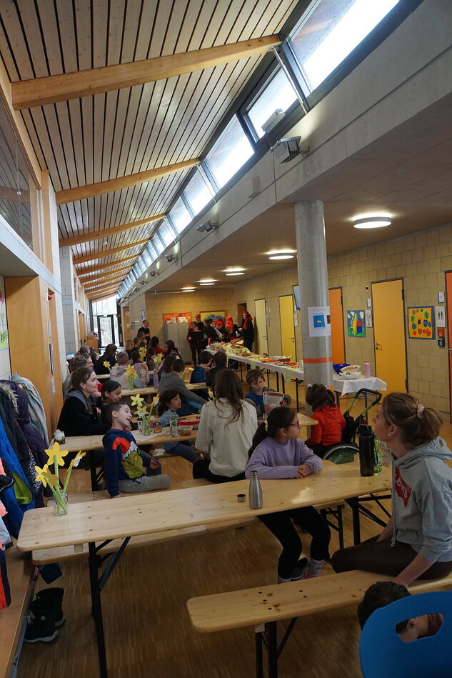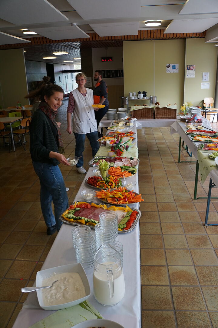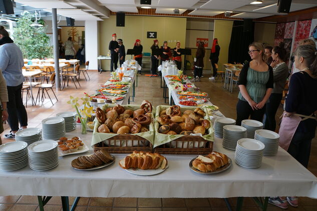 Am Donnerstag vor den Osterferien hat nach langer Pause endlich wieder der Osterbrunch stattgefunden. Diese schöne Tradition wurde vor vielen Jahren von unserem ehemaligen Schulleiter Herr Hall ins Leben gerufen. Neben tollen Auftritten durch die Klassen G6, H3 und H5, gab es ein wunderbar leckeres Büffet. Vielen Dank an alle Helferinnen und Helfer, die an der Gestaltug des Osterbrunches beteiligt waren!