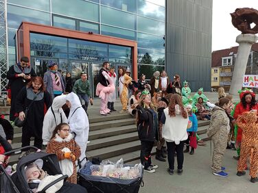 Am Fasnetssamschtig hat die Haldenwangschule mit einer Gruppe von über 50 SchülerInnen, Eltern, Geschwistern und Lehrkräften am großen Umzug in Singen teilgenommen. Mit bester Laune und vielen Bonbons , ging es "Hoorig" rufend durch die zahlreichen Zuschauer. Allen Teilnehmern war die Freude an der Fasnet anzusehen. Für das nächste Jahr werden bereits Pläne geschmiedet. Es war ein tolles Erlebnis für alle !