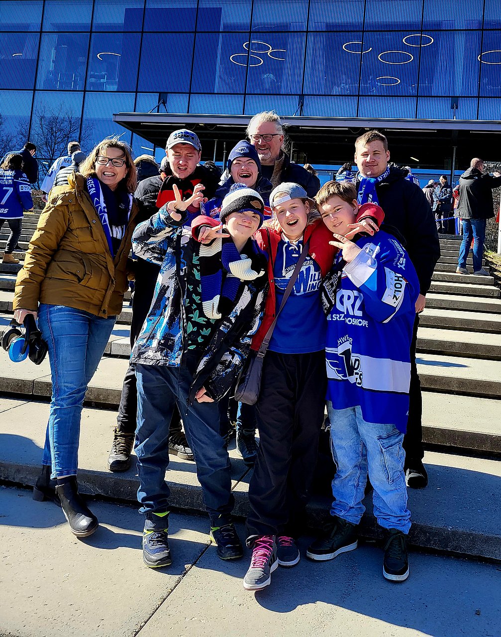 An einem sonnigen Sonntagnachmittag trafen wir uns an unserer Schule um zu einem ganz besonderen Ausflug aufzubrechen: Wir hatten gratis Karten bekommen für ein Eishockeyspiel der Schwenninger Wildwings - gespendet vom Verein der Eishockeyprofis! Für die Schülerinnen und Schüler war es der erste Besuch in einem Eishockeystadion - und ganz schön aufregend für alle. Wir hatten Trikots, Schals und Kappen in den Vereinsfarben an. Die Wildwings spielten gegen die Fishtown Pinguins aus Bremerhaven. Die Stimmung im Stadion war super, wir haben die Fangesänge natürlich mitgesungen ("Auf geht's Jungs vom Neckar!") und über das erste Tor unserer Mannschaft aus vollem Hals gejubelt. Es war ganz schön laut und sehr, sehr spannend. Leider haben die Schwenninger gegen den damaligen Tabellenführer aus Bremerhaven knapp verloren. Aber sie haben super gekämpft, und wir haben einen tollen Spieltag erlebt.