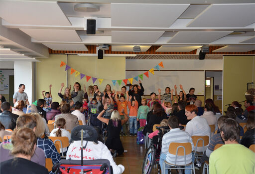 In jede Klasse der Grundstufe gehen 6 - 7 Schülerinnen und Schüler. Jede Klasse hat eine Farbe, die sich auch am Türschild befindet, damit die Schüler*innen sich besser orientieren können. Die Klassen sind vorwiegend altersgemischt. Mehrmals in der Woche kooperieren zwei bis drei Klassen miteinander, beispielsweise im Schwimmen oder im Sport.